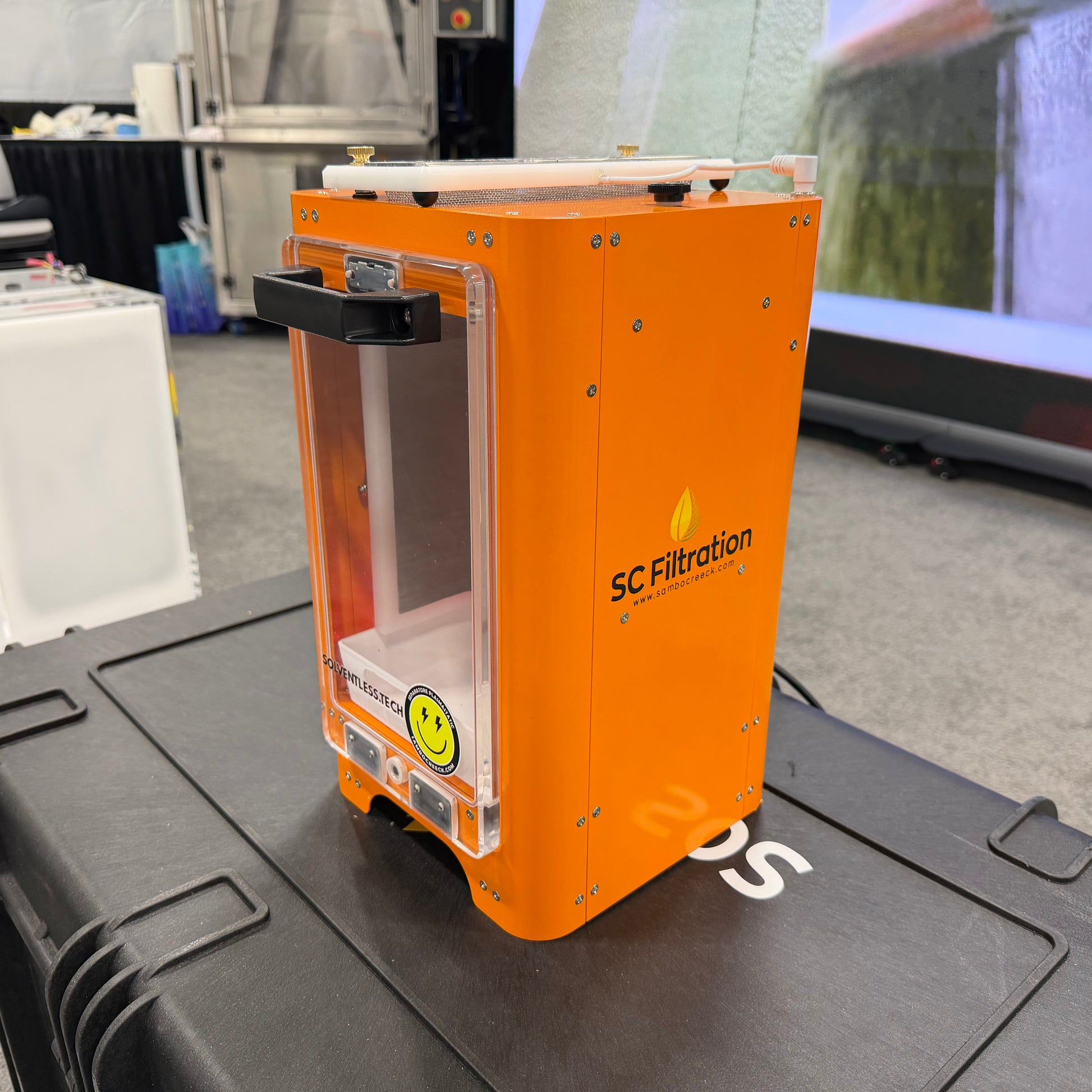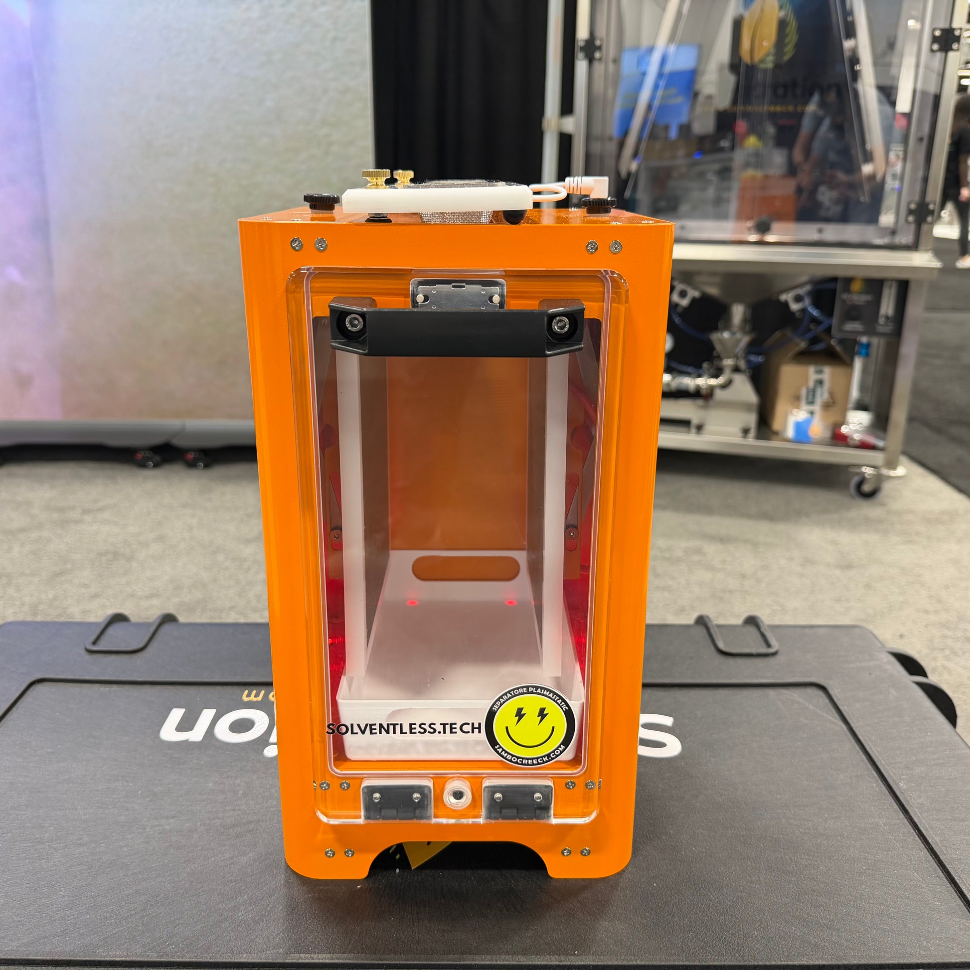Is your biomass amenable to the Plasmastatic process? Our desktop version makes testing biomass easy. Simply spoon your powdered product into the device and collect round glandular heads.